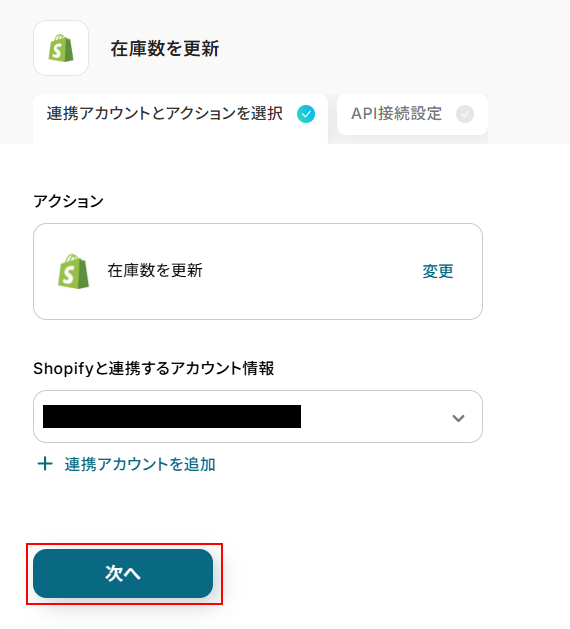 増減する数量を設定します。 ここには実際に増減させたい在庫数を設定します。 こちらもデフォルトで取得した値が表示されているため今回はそのまま使用しますが、変更したい場合は入力欄をクリックし、取得した値から選択してください。