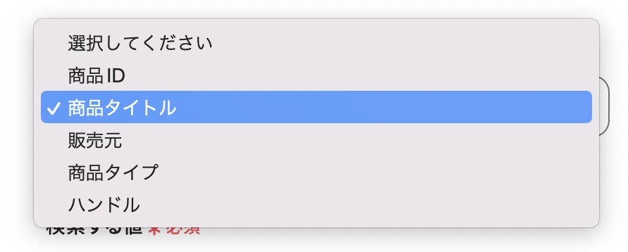 検索項目を商品タイトルにしているので、商品名を入力していきましょう!