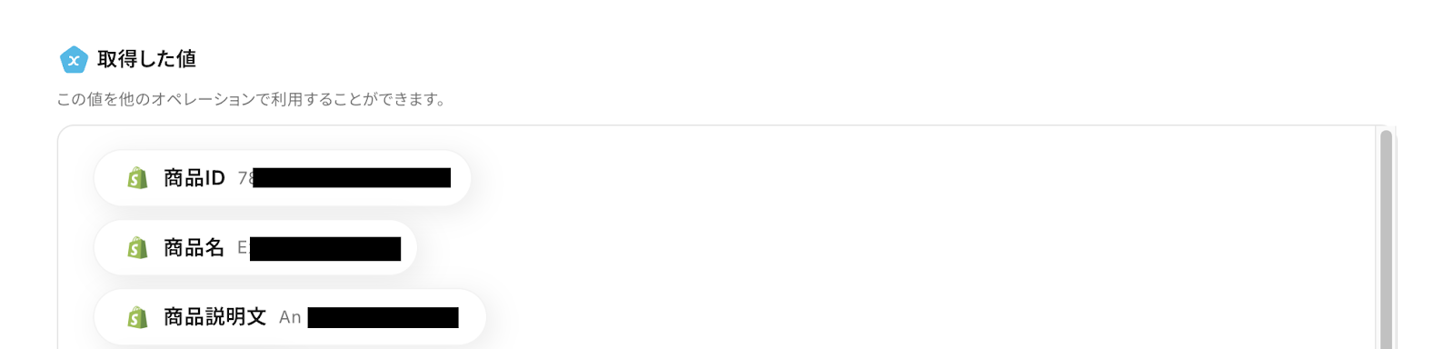 テストに成功すると取得した値として商品名などがアウトプットされるので、確認できたら「保存する」をクリックしましょう。