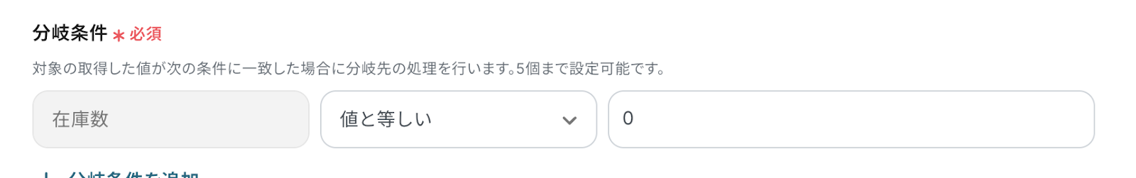 テンプレートのタイトルにもあるように「在庫数が閾値以下」になっているかを判断するための設定です。