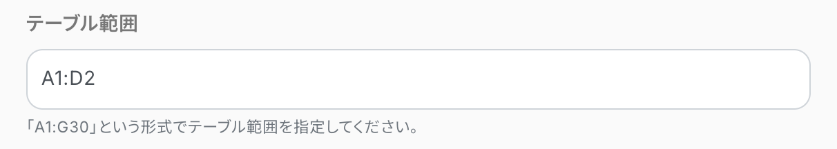 「テーブル範囲」はGoogle スプレッドシートに合わせて入力してください。