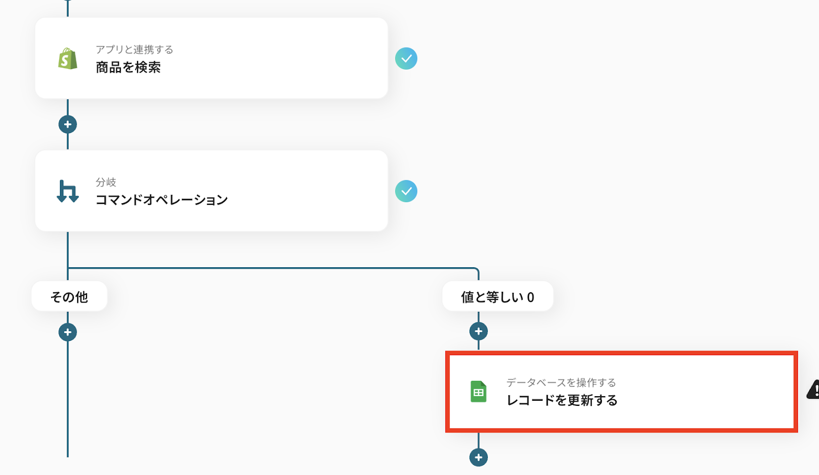 それではここから代表的な例として「Shopifyで在庫数が閾値以下になった際に、Google スプレッドシートのレコードを自動更新する」フローを解説していきます!