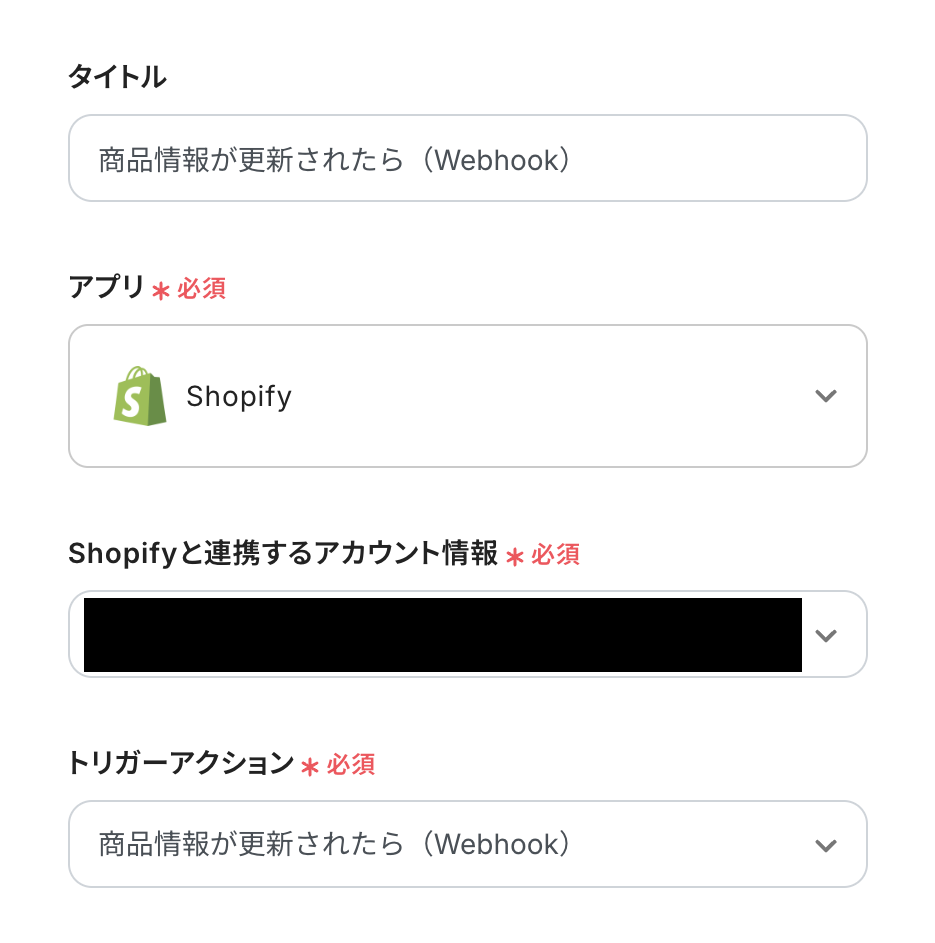 - Shopifyのトリガー設定とShopifyとGoogle スプレッドシートのアクション設定
