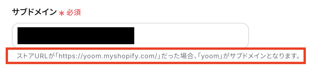 「サブドメイン」を赤枠部分を確認の上、入力しましょう。