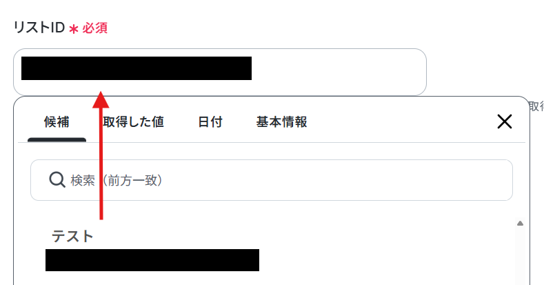 リストIDは、枠内をクリックし表示される候補から選択しましょう。
