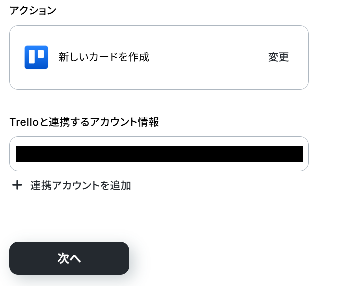 Trelloと連携するアカウント情報を確認したら「次へ」ボタンをクリックしましょう。