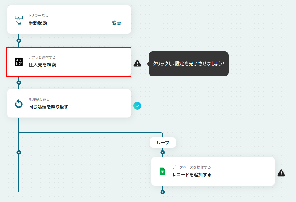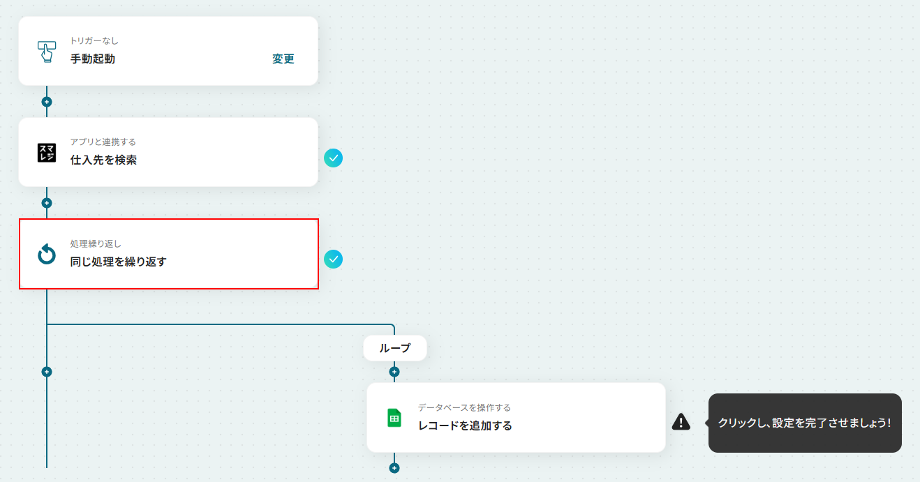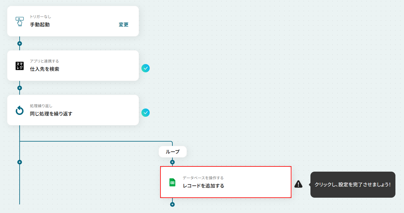 お疲れ様でした! 以上がスマレジの仕入先情報を検索し、Google スプレッドシートに自動で追加するフロー でした!