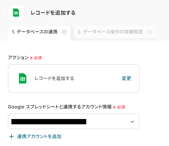 ステップ6:Google スプレッドシートにレコードを追加する設定