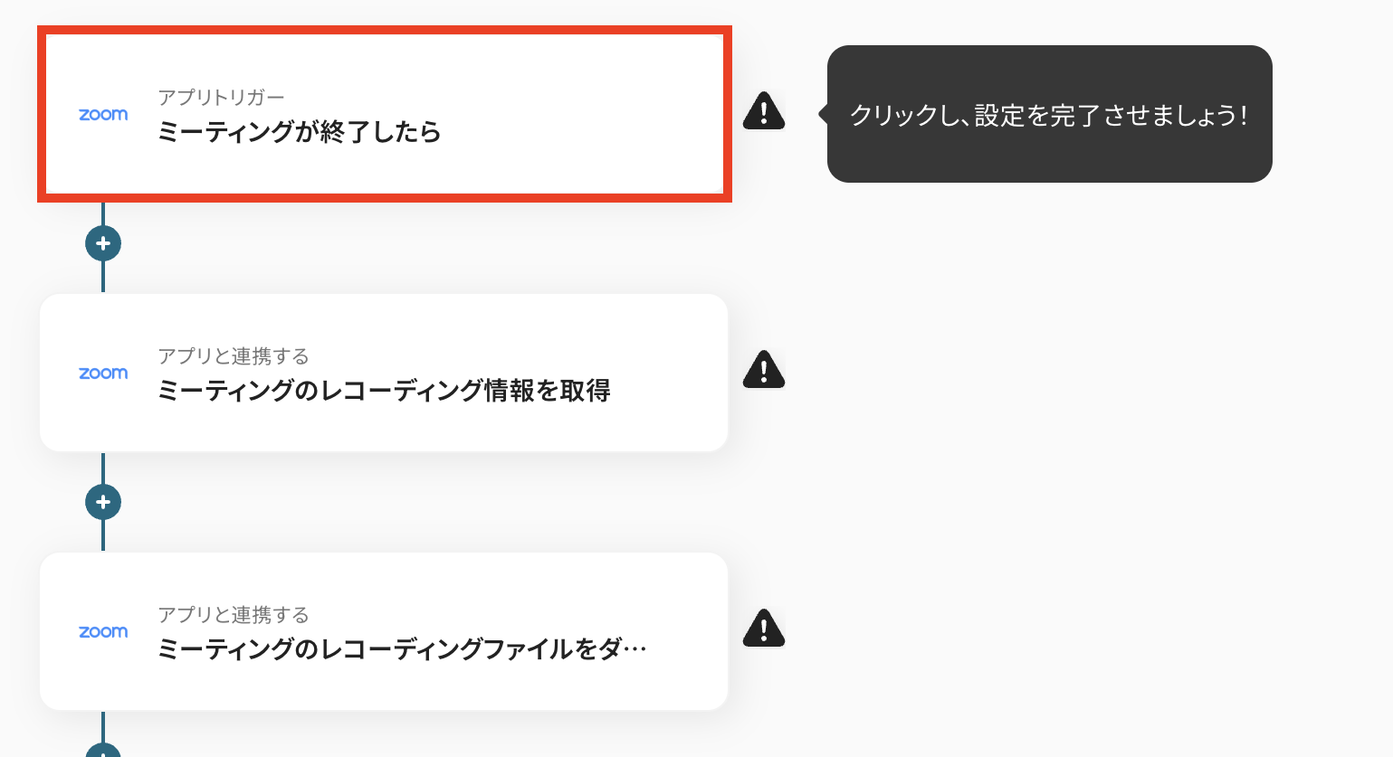 それではここから代表的な例として「Zoomの定例ミーティングが終了したら自動で議事録を作成し、その内容をTrelloカードとして登録する」フローを解説していきます!