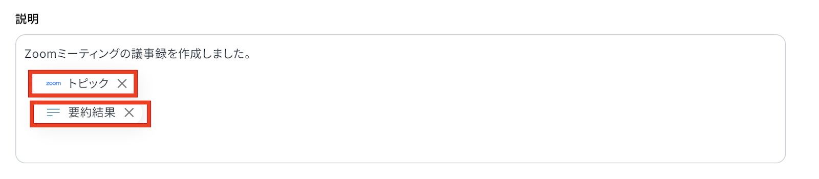 Zoomの定例ミーティング終了後に作成される議事録から、決定事項や担当者などの特定の情報だけを抽出してTrelloのカードに自動登録するフローです。