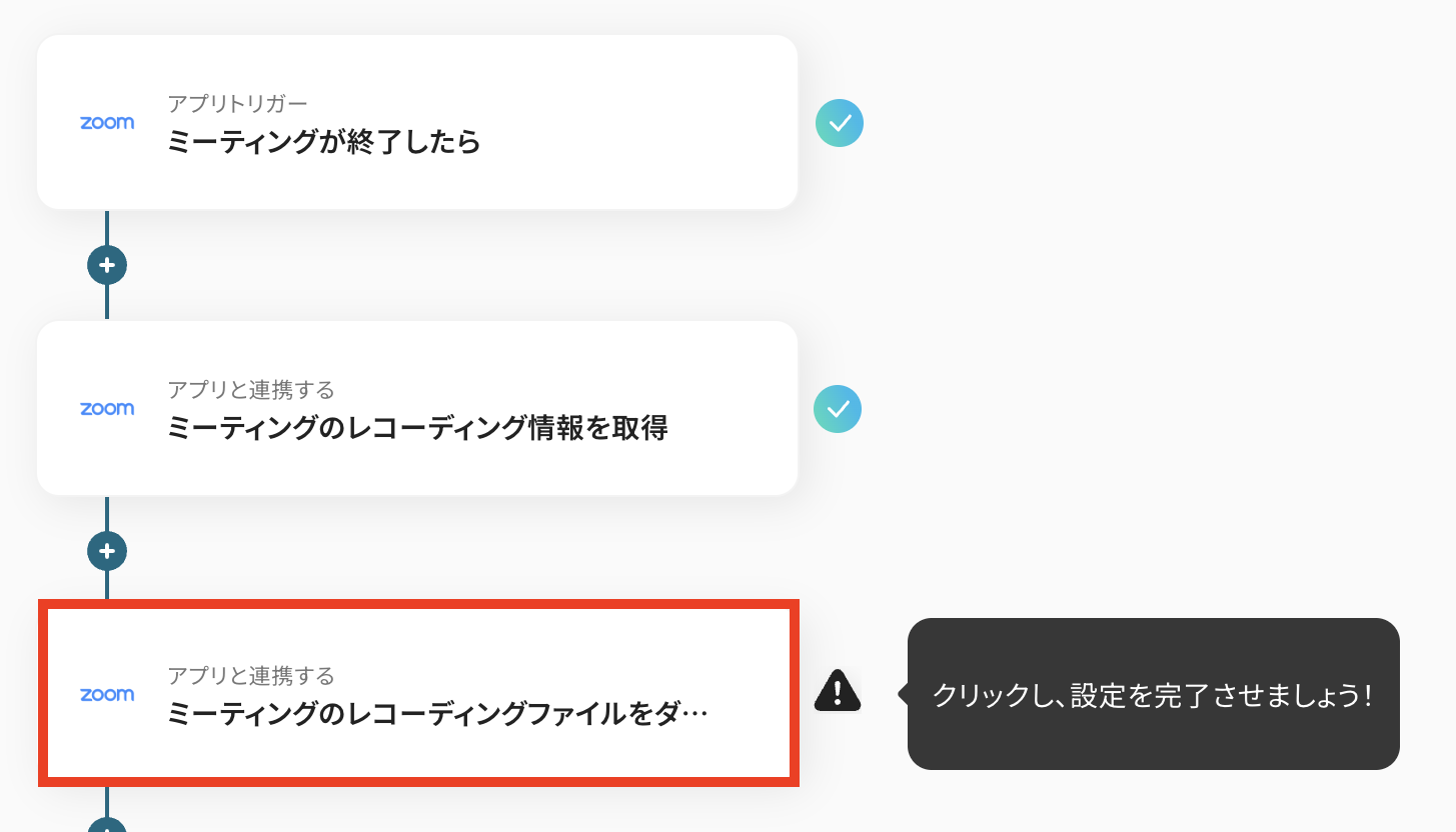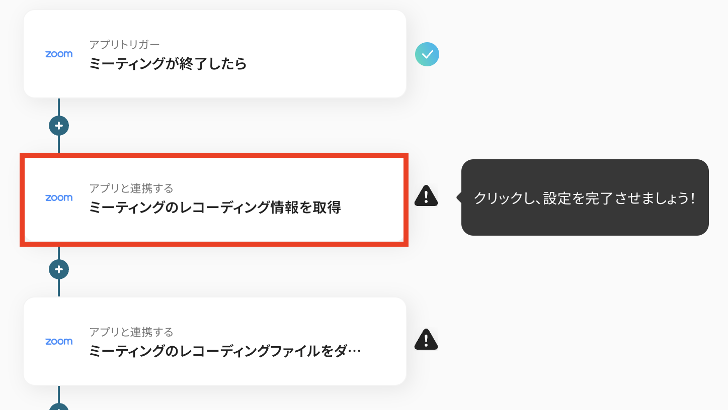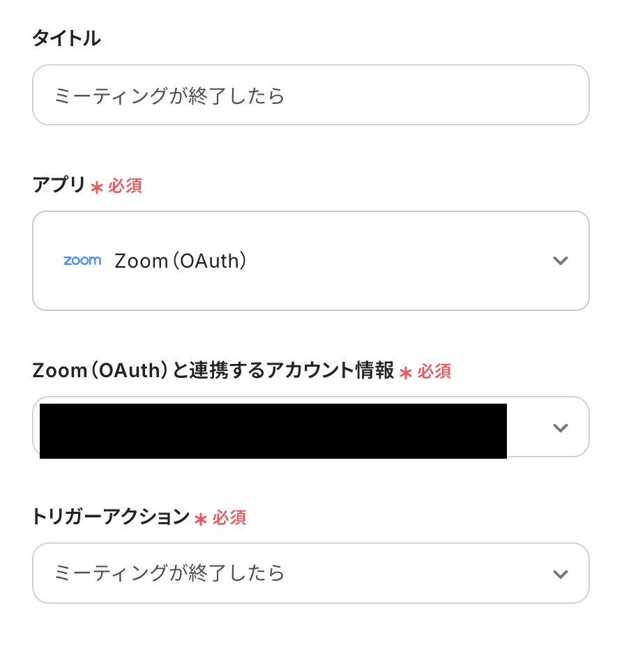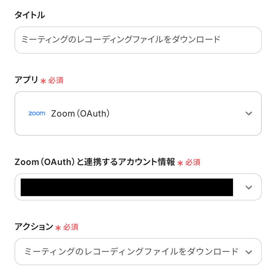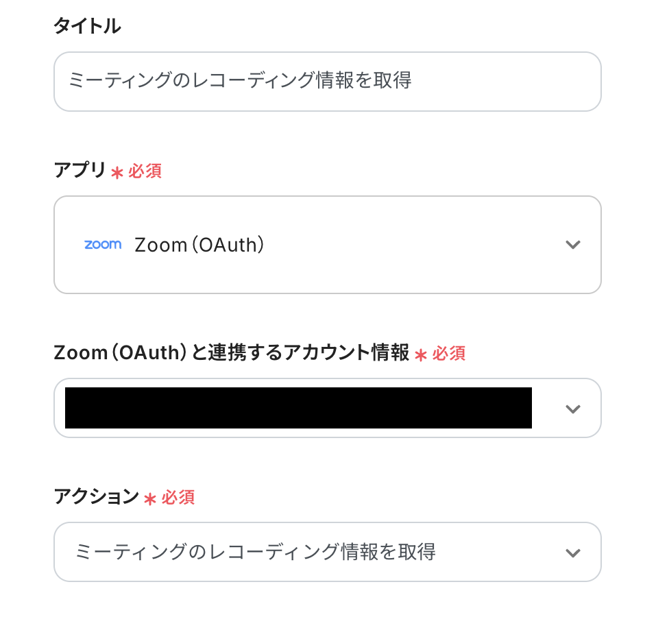 ・Zoomのプランによって利用できるアクションとそうでないアクションがあるため、ご注意ください。