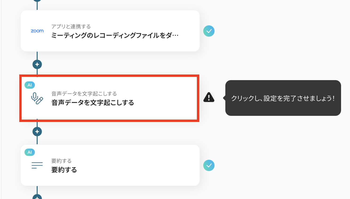 - Zoomのトリガー設定、文字起こしと要約の設定、Trelloのアクション設定