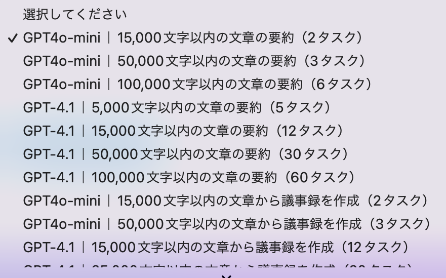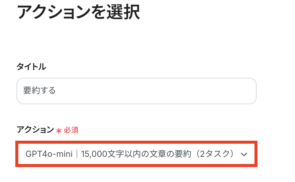 要約に使用するChatGPTのモデルと文字数を選び、アクションを決めます。