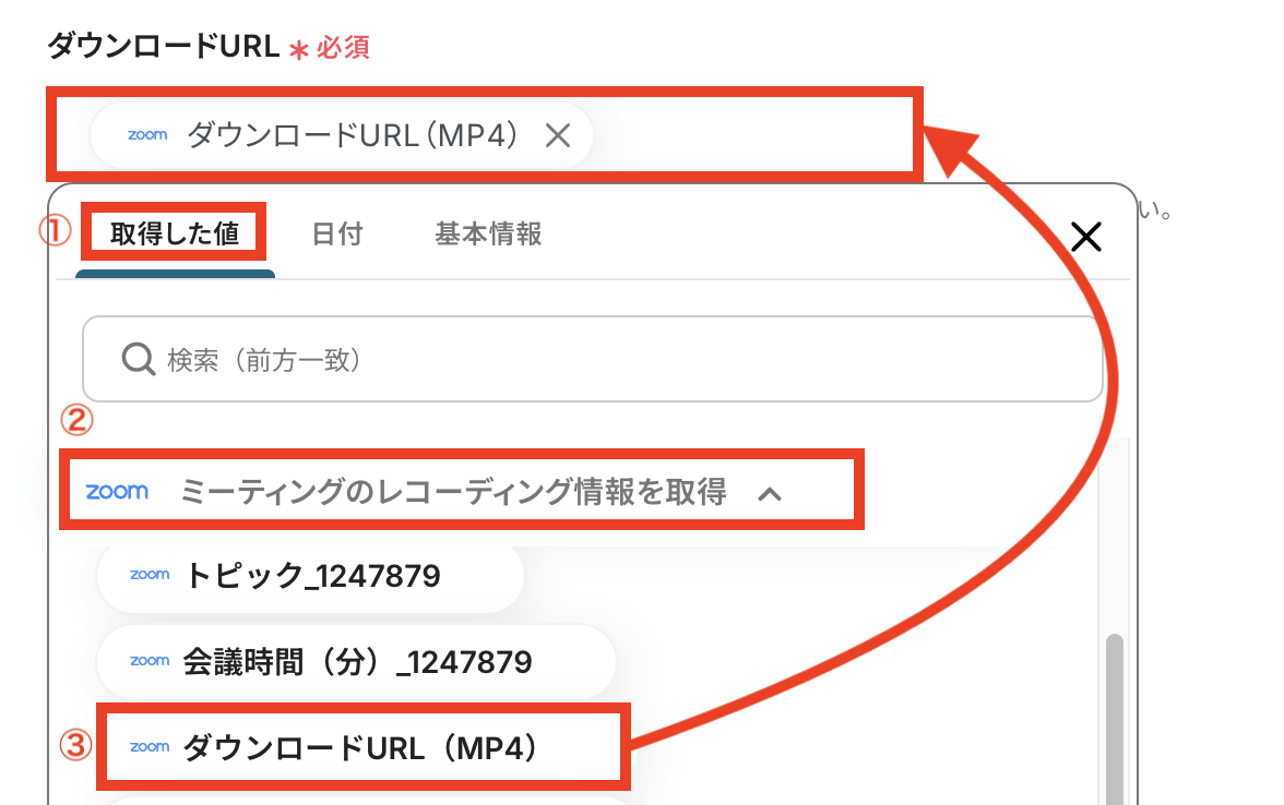 ※Zoomのレコーディング情報を取得するには、ミーティングデータが「クラウドレコーディング」されている必要があります。
