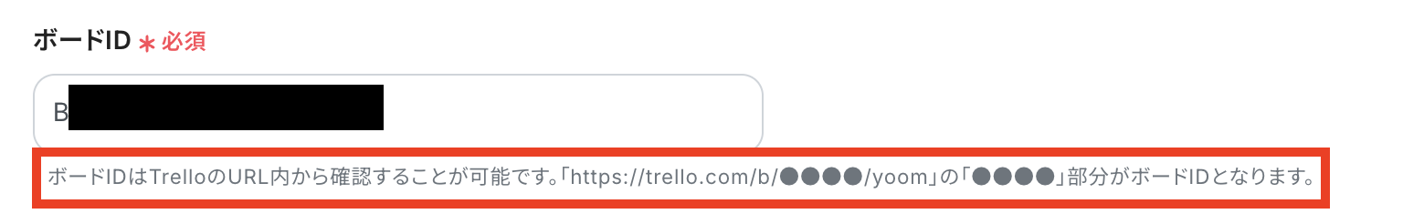 「ボードID」は赤枠の説明文を確認しながら入力しましょう。