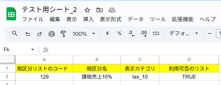 該当のGoogle スプレッドシートも見に行きましょう。税区分が記録されています。このあとフローを起動すれば、順番に全ての処理が行われます。
