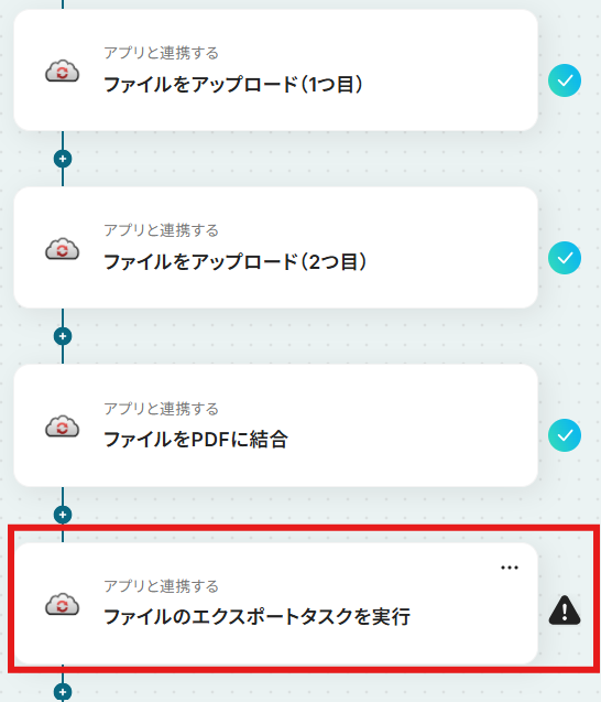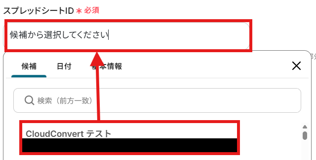 「ファイルIDリスト」を設定しましょう。 CloudConvertの「ファイルをアップロード(1つ目)」アクションと「ファイルをアップロード(2つ目)」で取得した「ファイルID」をそれぞれ設定してください。