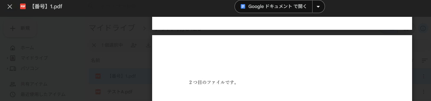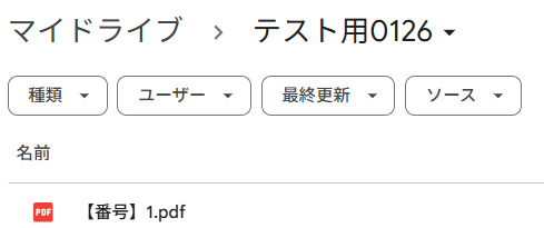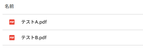 Google Driveに今回のフローで使用したい2つのPDFをアップロードしておきましょう。 「テストA.pdf」と「テストB.pdf」を例としてアップロードしています。