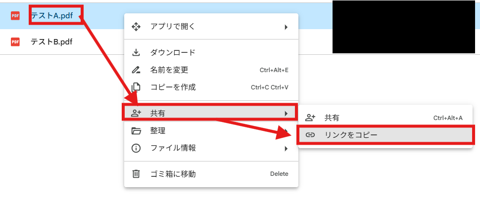 ※Google DriveにアップロードされているPDFファイルのファイルIDは、以下の手順で確認可能です。