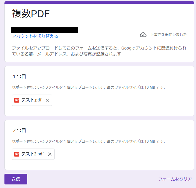 フォームから送信されたPDFを結合し、Gmailで送信する