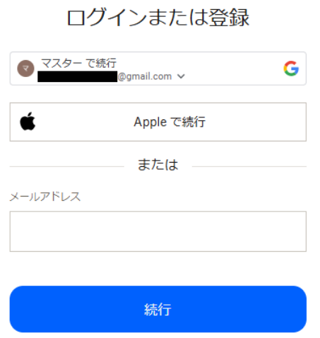 下記の画面になりますので、メールアドレスを入力し「続行」を押してください。
