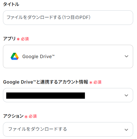 1.次に、Googleフォームで送信されたファイルはGoogle Driveに保存されるため、Google Driveに保存されたファイルをダウンロードする設定を行います。