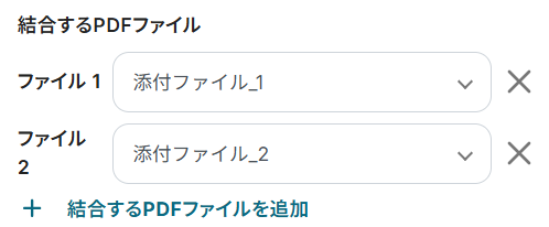 ここでは、結合するPDFファイルを設定していきます。