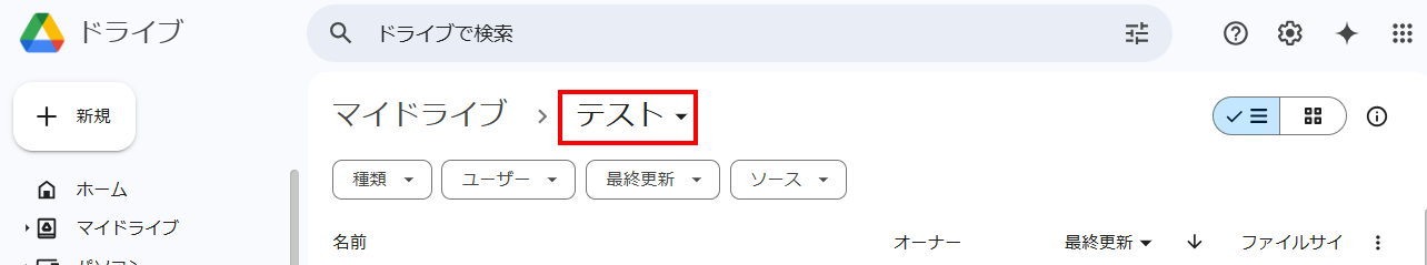 まだ、Google Driveに対象のフォルダを作成していない場合は、このタイミングで作成してください。