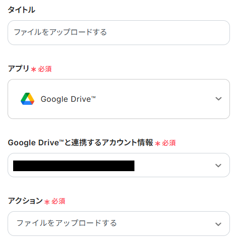アクションは、テンプレート通りに「ファイルをアップロードする」のままで大丈夫です。