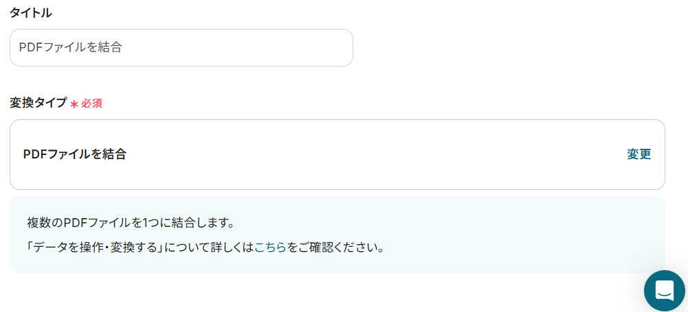 - 結合するPDFファイル:先ほどフォームでアップロードした内容が反映しています。特に変更は不要です。