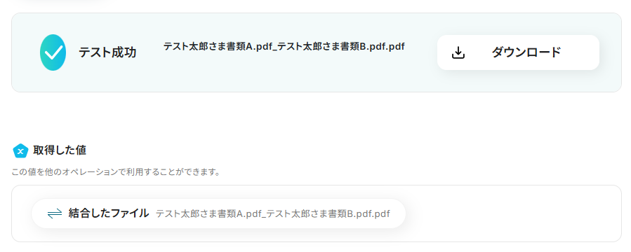 例えば、結合したPDFを指定の場所に保存したり、関係者に通知したりといった作業も自動化できるので、業務全体の効率アップにつながります!