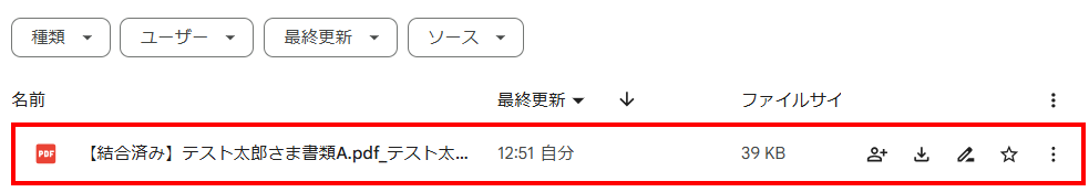 ダウンロードボタンを押して、PDFデータが結合されているか確認してみましょう。