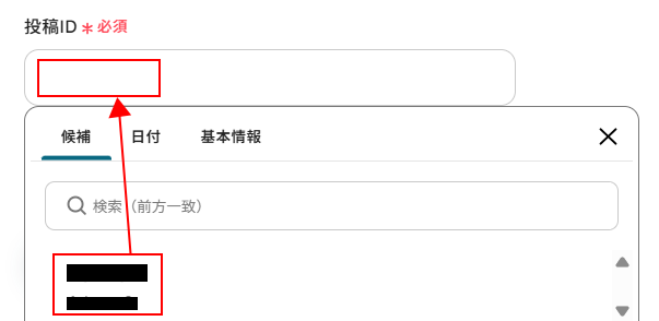 投稿IDも同様に、入力欄をクリックしコメントの通知を知りたい投稿のIDを選択します。
