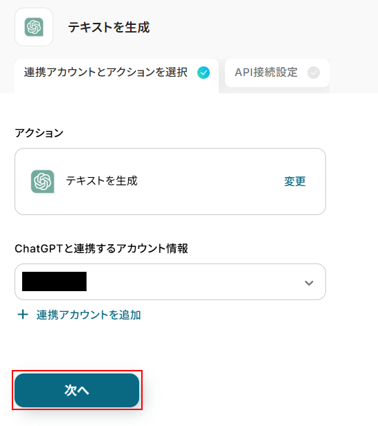 ※ChatGPT(OpenAI)を使ったアクションを動かすには、OpenAIのAPI有料プランに契約しておく必要があります。APIの利用料金が発生した時にスムーズに支払いができるよう、契約内容を整えておきましょう。