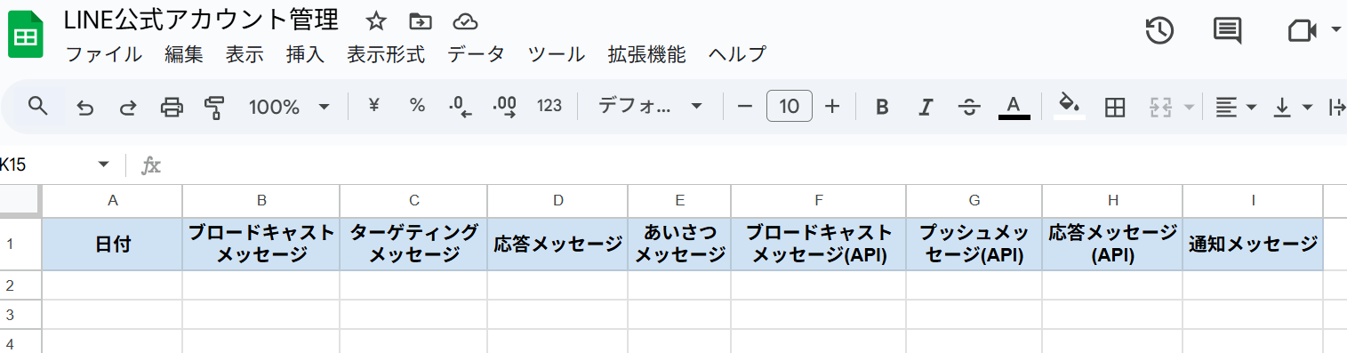 先ほど取得した配信数情報をGoogle スプレッドシートに自動で追記する設定をします。 まず準備として、追記するためのシートを用意しましょう。