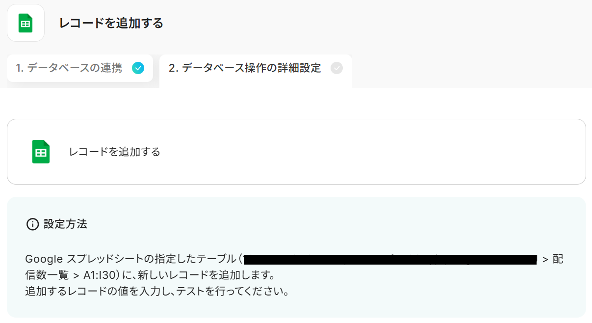 ステップ5:Google スプレッドシートのアクション設定