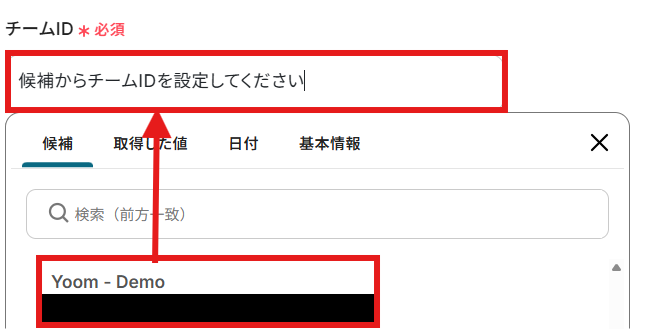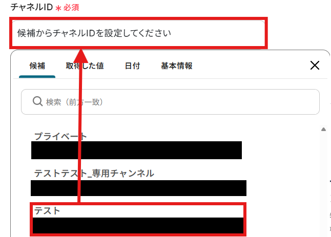 メッセージを送りたい「チームID」と「チャネルID」を候補から選択しましょう。