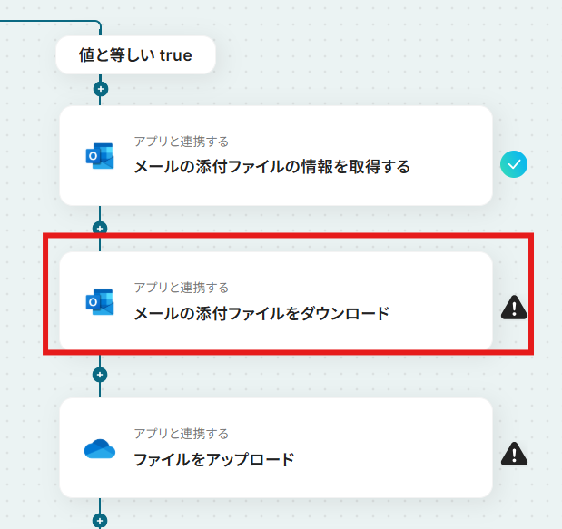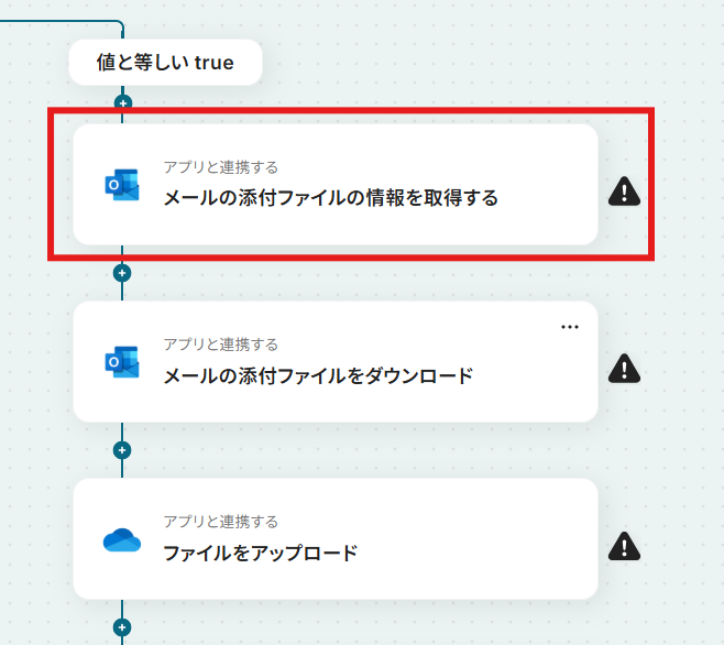 「メールの添付ファイルの情報を取得する」を選択します。