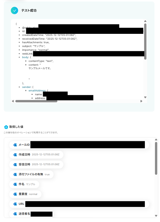 ステップ5:Outlookで添付ファイルの情報を取得