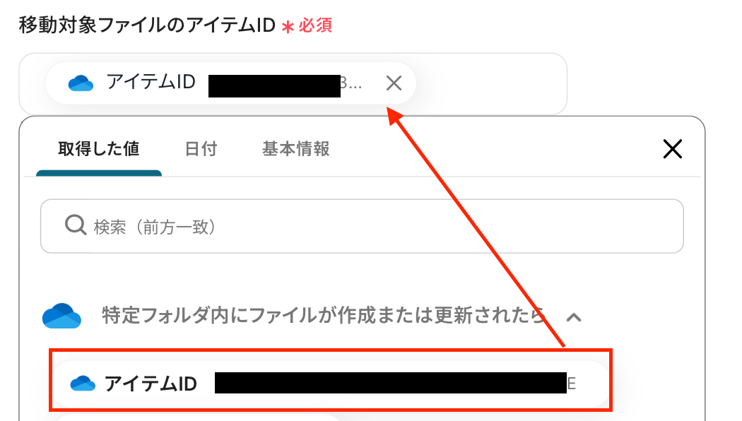 - ファイルを別のフォルダに移動するオペレーションでは、移動先のフォルダを任意で指定できます