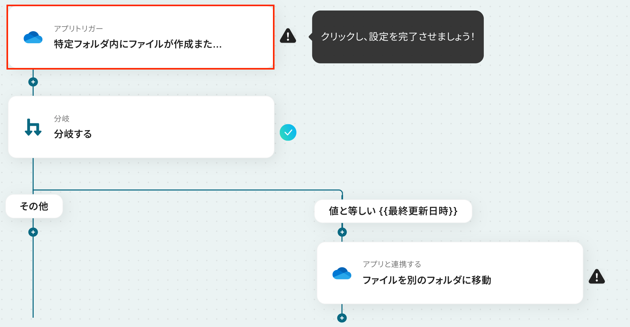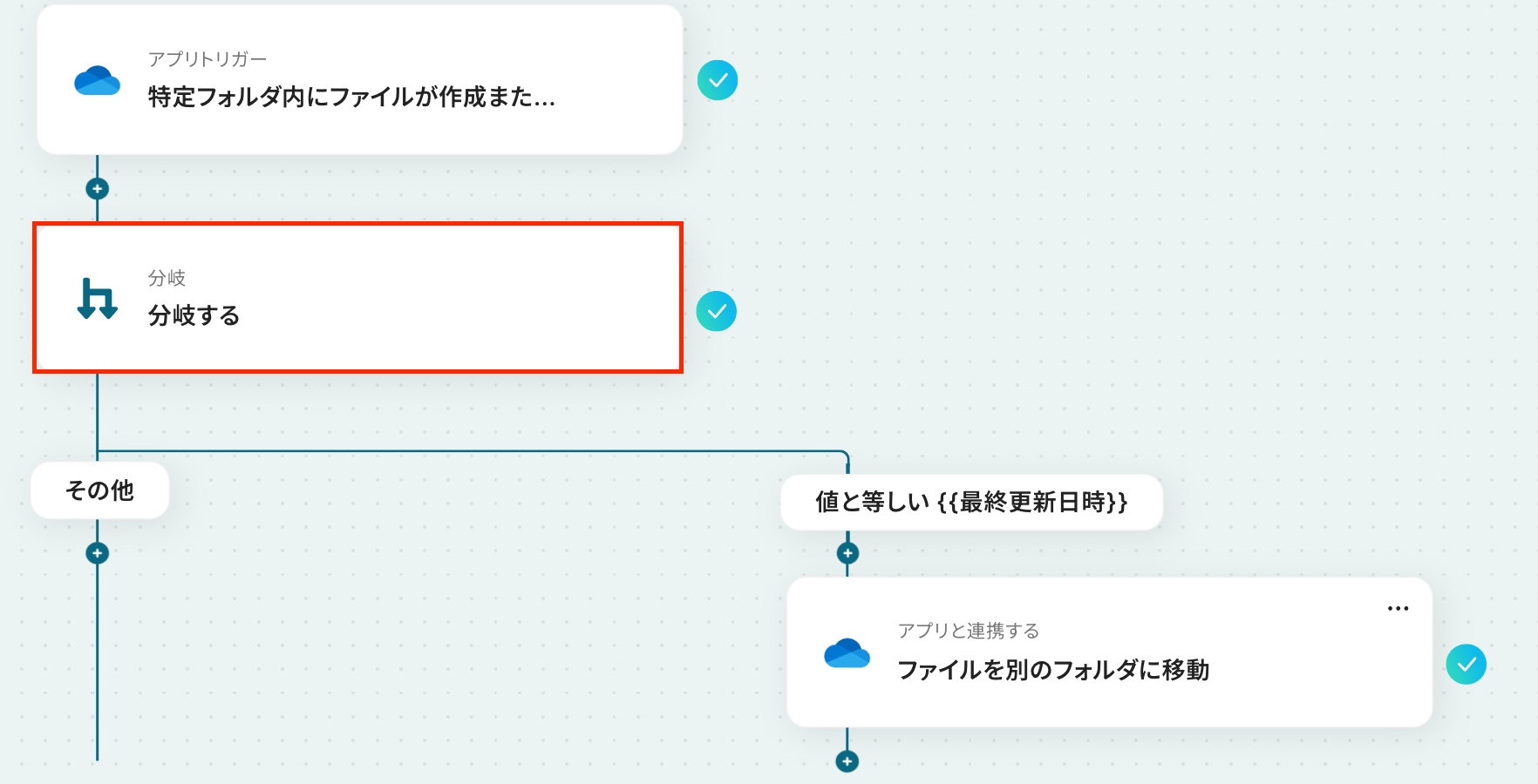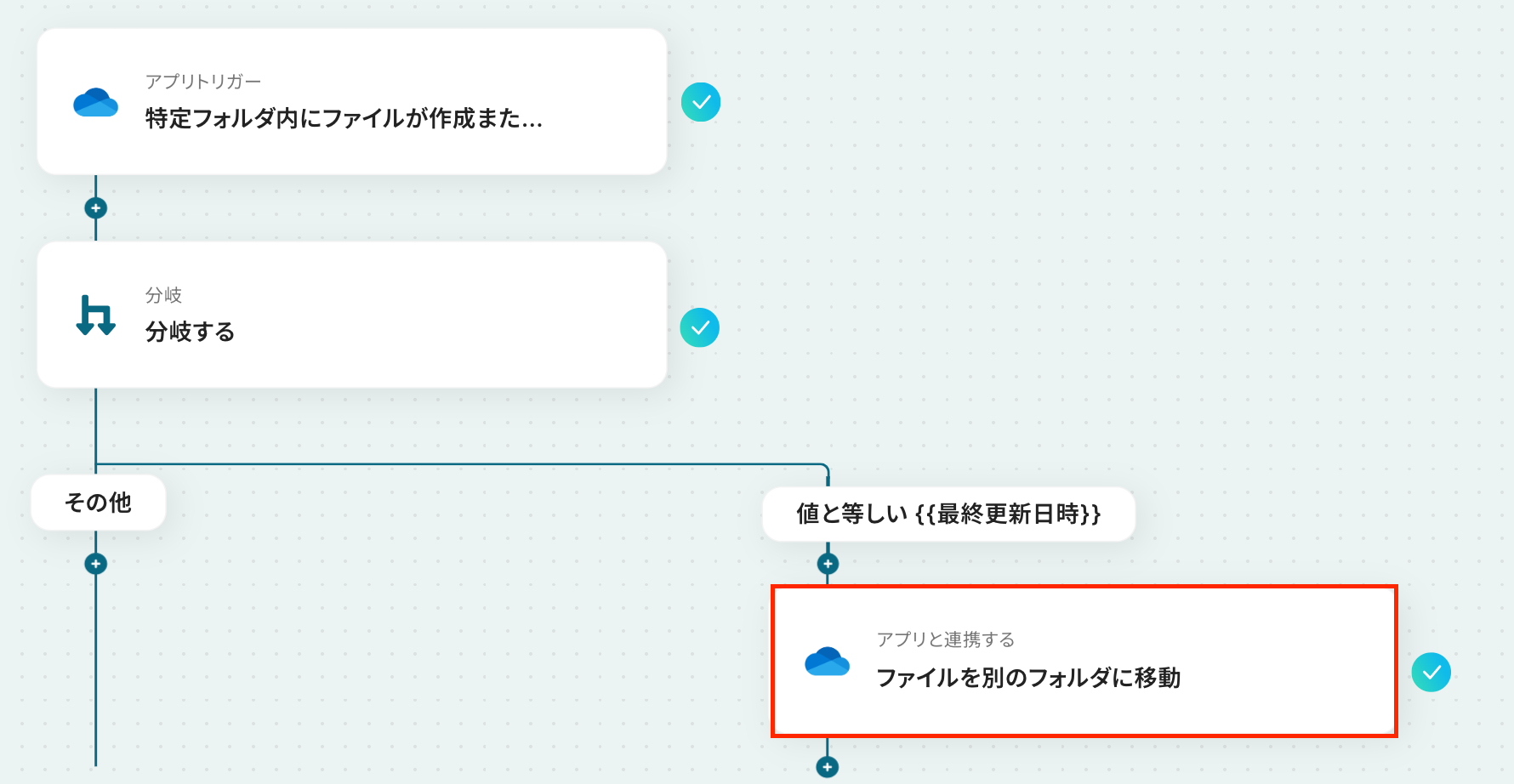 例えば、「請求書という名前のPDFだけ経理フォルダへ」のように、条件に応じて処理を分けることができます。