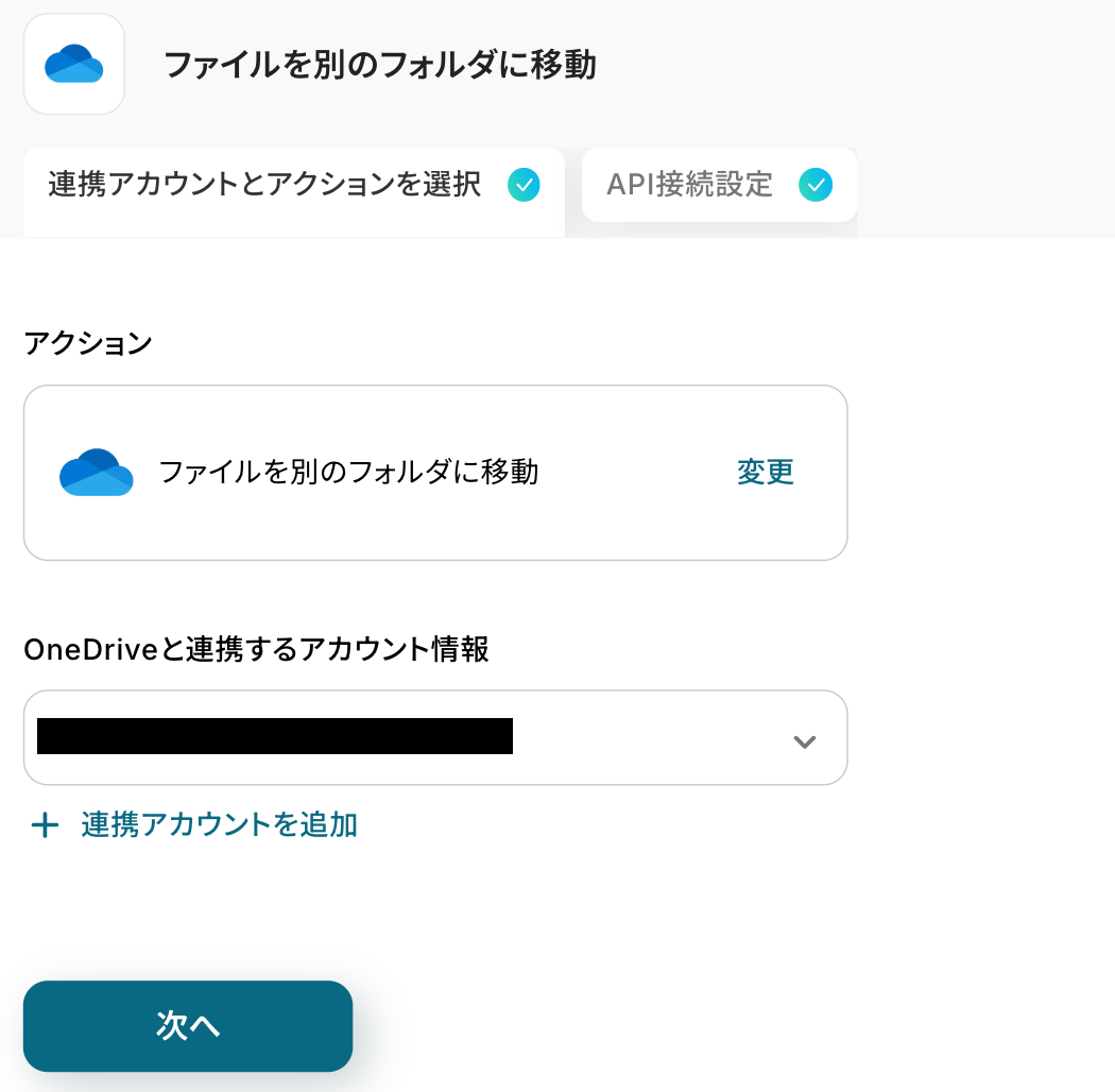連携するアカウント情報を確認し、アクションはテンプレート通りのまま「次へ」をクリックして進んでください。