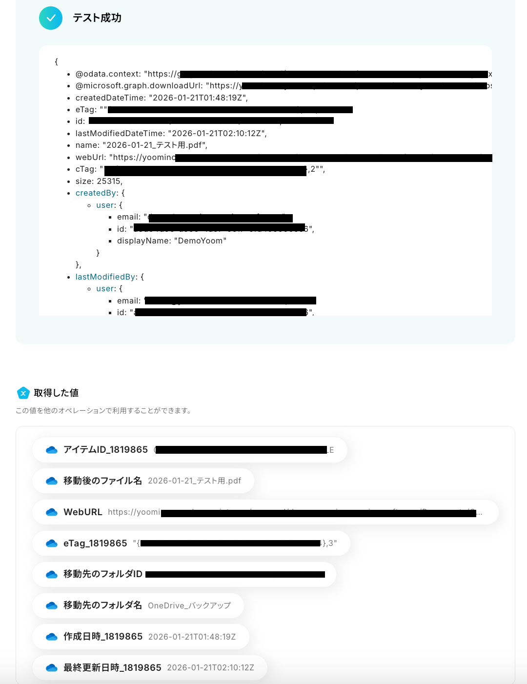 - OneDriveへのファイルアップロード設定では、ファイルの保存先フォルダやファイル名を任意で指定することが可能です。