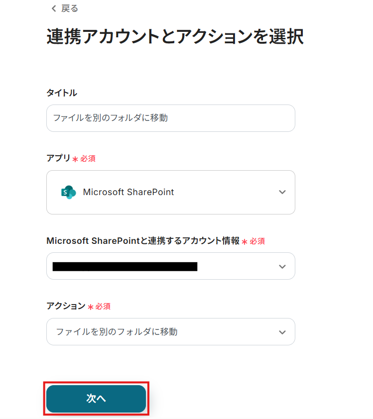 ステップ6:Microsoft SharePointの別フォルダに移動する設定