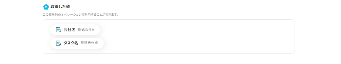 続いて、抽出したい項目を設定していきます。 「会社名」と「タスク名」を自動で取得できるように設定してみました! (用途に合わせて、取得したい項目をへんこうできますよ。)