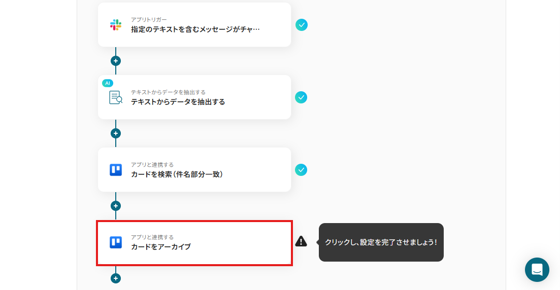 最後に、「カードをアーカイブ」という項目を設定していきましょう!