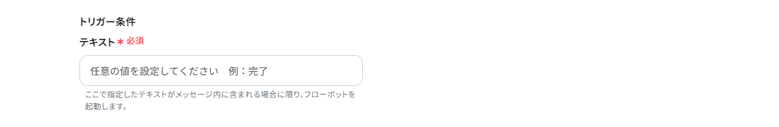 トリガー条件テキストは、設定したい値を任意で設定してください。 ここで設定した値が含まれるメッセージが送信された時のみフローが起動しますよ!