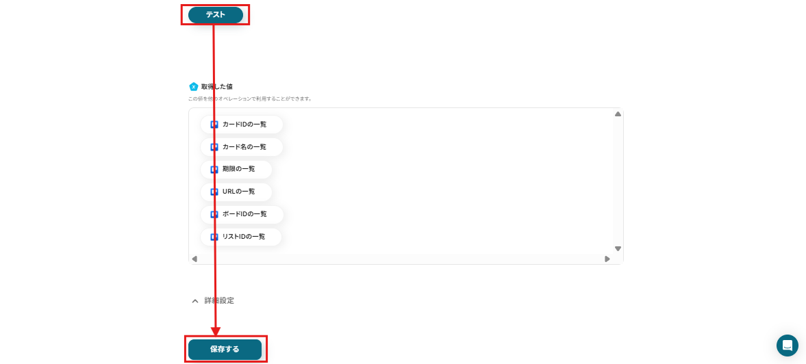 このアウトプットは、この後設定するTrelloとの連携で活用します。 確認ができたら設定を保存しましょう! ※参照:アウトプットについては、こちら のページをご確認ください。