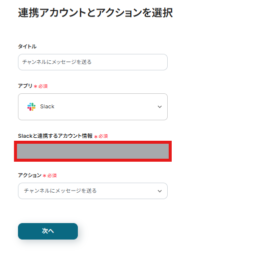 次にSlackで受け取るためのチャンネルやメッセージの内容を設定します。