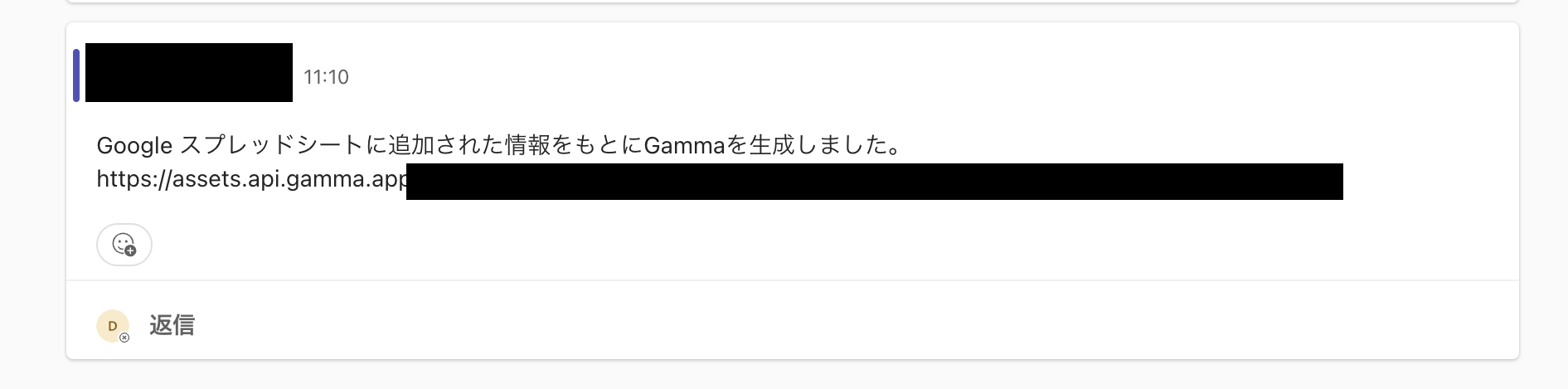 以上が、Gammaで作成したプレゼン資料をMicrosoft Teamsに通知する連携手順になります。